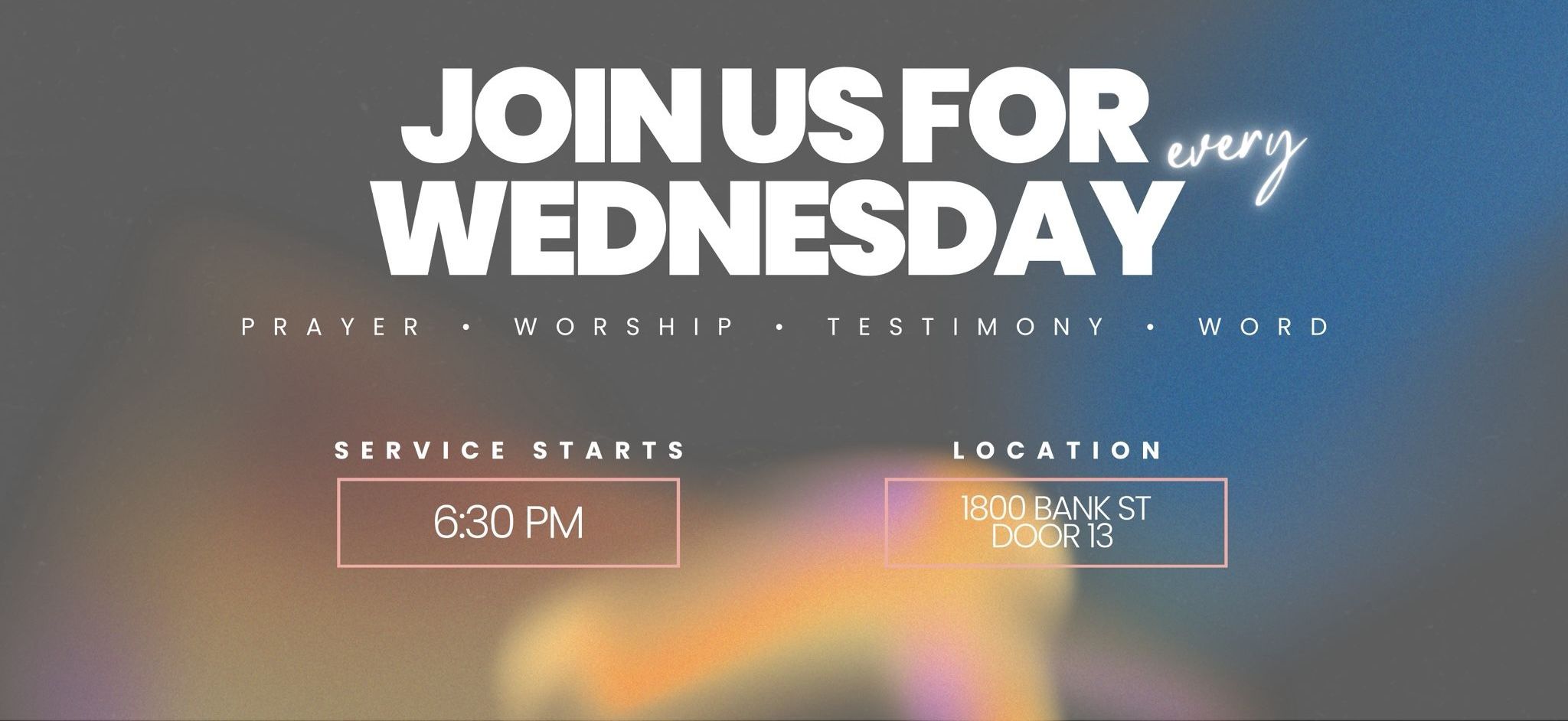 We invite you to our weekly Wednesday services as we pray and worship our Lord Jesus Christ.